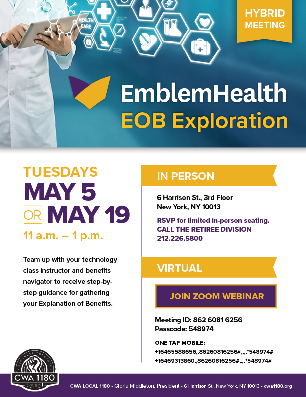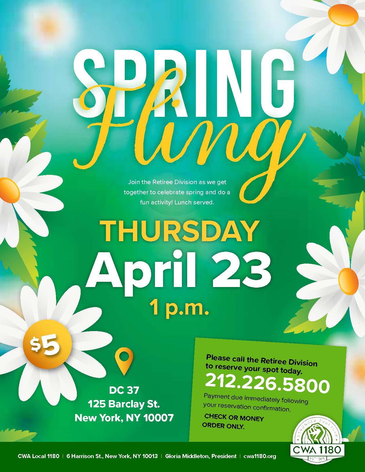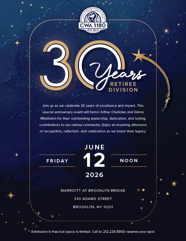 Call the Retiree Division to reserve your spot today: 212.226.5800 |