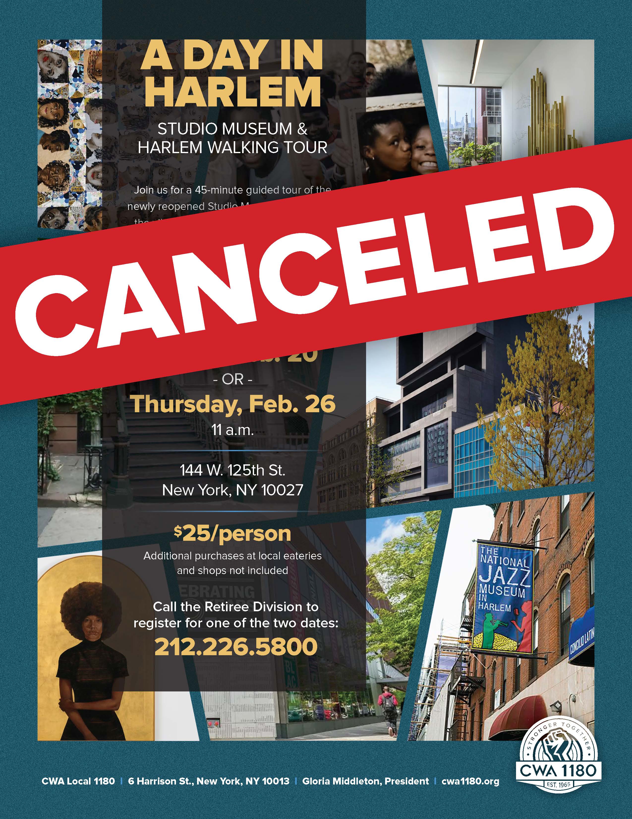 Thurs. 2/26 | A Day in Harlem $25/person CANCELED | 144 W. 125th St. |